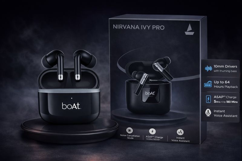 • boAt Nirvana Ivy Pro are premium true wireless earbuds crafted for immersive sound, powerful bass, and crystal-clear calling. With advanced audio tuning, long playback, and a sleek design, theyโ€™re perfect for music lovers and everyday use.