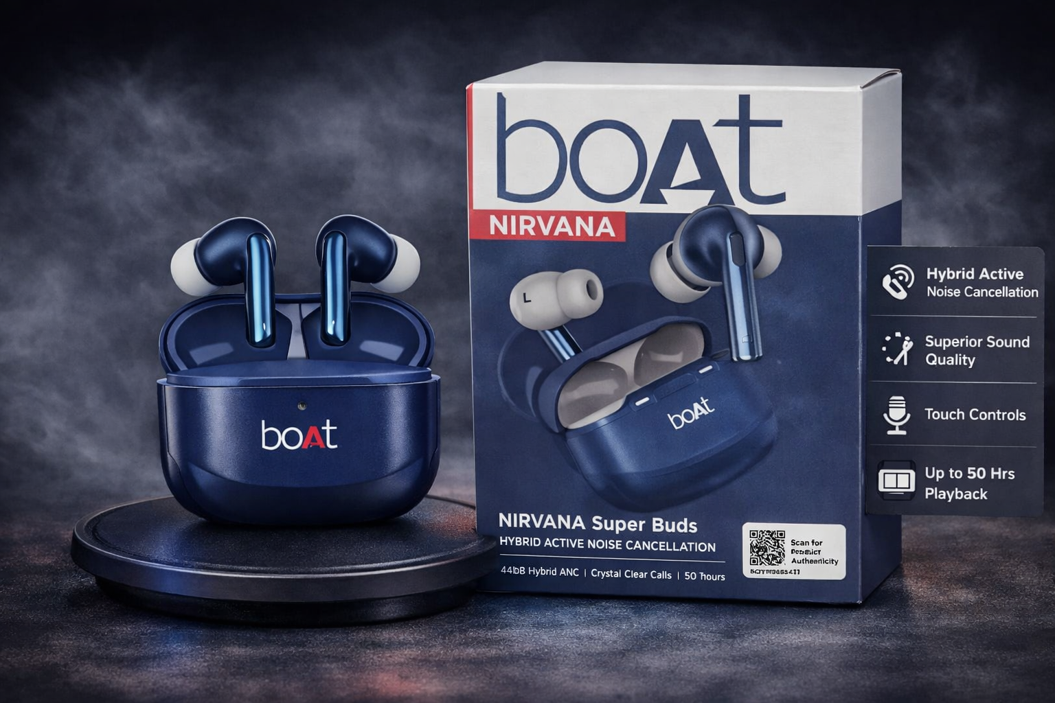 Experience powerful sound and all-day comfort with boAt Nirvana Super Buds Airdopes. Designed for immersive listening, these true wireless earbuds deliver rich audio, deep bass, and crystal-clear calls—perfect for music, gaming, work, and everyday use.