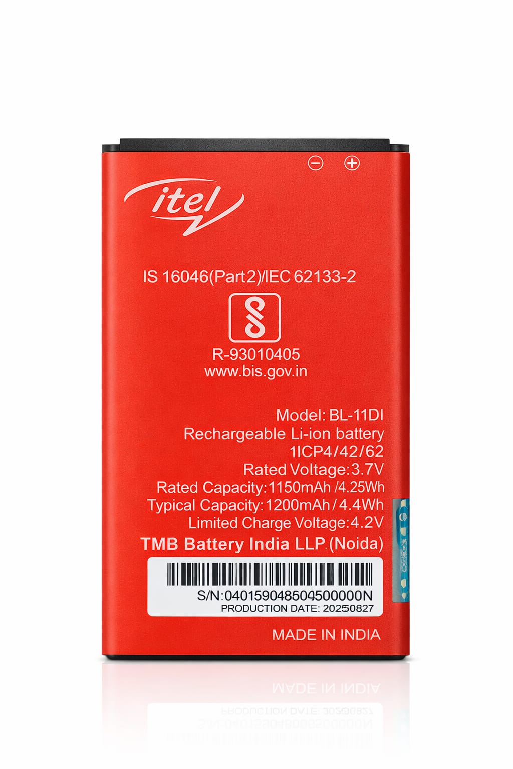 Voltage: 3.7 V (nominal), with a max charge around 4.2 V, matching Itel device requirements.