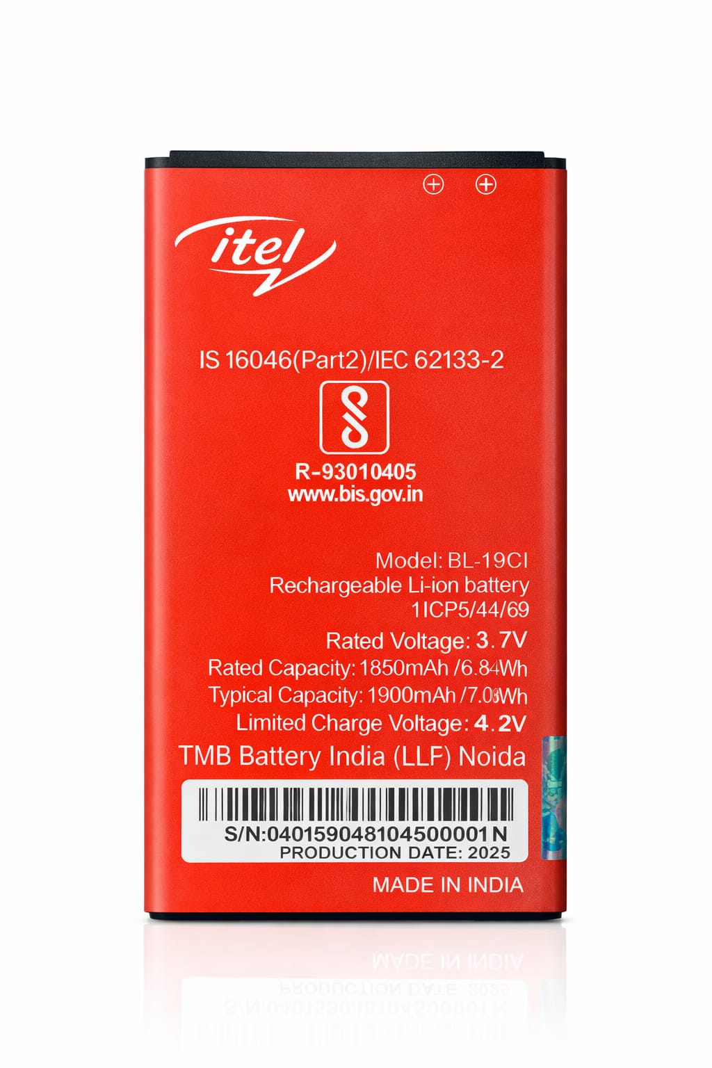 • Voltage: ~3.7 V — standard for Itel mobile batteries.