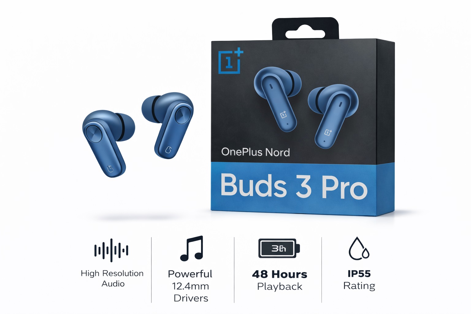 The OnePlus Nord Buds 3 Pro are premium true wireless earbuds designed for immersive sound, cutting-edge noise cancellation, and all-day listening comfort. Featuring up to 49 dB hybrid Active Noise Cancellation (ANC), these earbuds adapt to your environment to block out ambient noise so you can focus on music, calls, or videos with clarity.