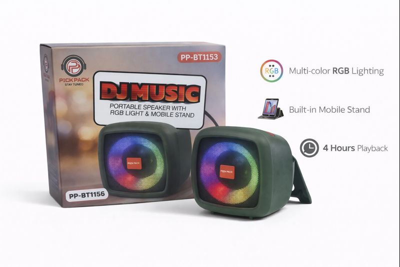 Pick Pack DJ Music Wireless Speaker is a party-ready Bluetooth speaker equipped with vibrant RGB lighting and a built-in mobile stand. With powerful sound, enhanced bass, and long battery life, it’s perfect for parties, travel, and everyday entertainment.
